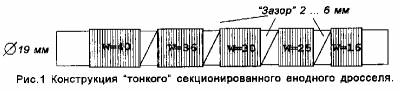 Здесь рассмотрен, так называемый, секционированный тонкий анодный дроссель. К ним относятся дроссели, намотанные на каркасах диаметром 16 ... 20 мм. Но существуют еще и "толстые" дроссели, каркасы которых имеют диаметр от 25 до 30 мм и более. Эти дроссели имеют собственные особенности и используют их, как правило, в промышленной аппаратуре большой мощности.